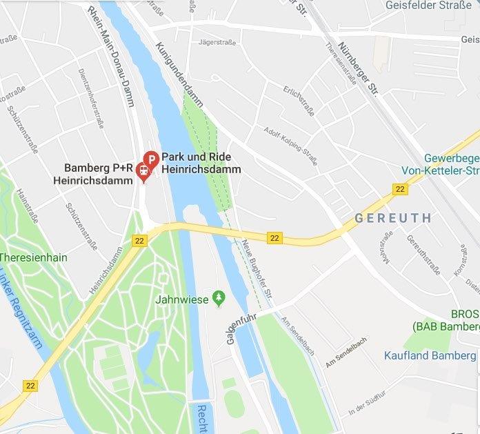Unser Reiseplan für die Fahrt zum „Rheingold“ nach Chemnitz am 31. März 2018 um 10.30 Uhr hat sich in einem Punkt verändert: Wir haben mit dem Park & Ride Parkplatz Heinrichsdamm einen neuen Startpunkt für unsere Fahrten ausgewählt, zentral gelegen und leicht erreichbar. Es fallen zwar geringe Parkgebühren an, dafür ist der Parkplatz überdacht und beleuchtet, bietet Frauenparkplätze und ist an den städtischen Nahverkehr bestens angebunden: P+R Heinrichsdamm - Stadtwerke Bamberg