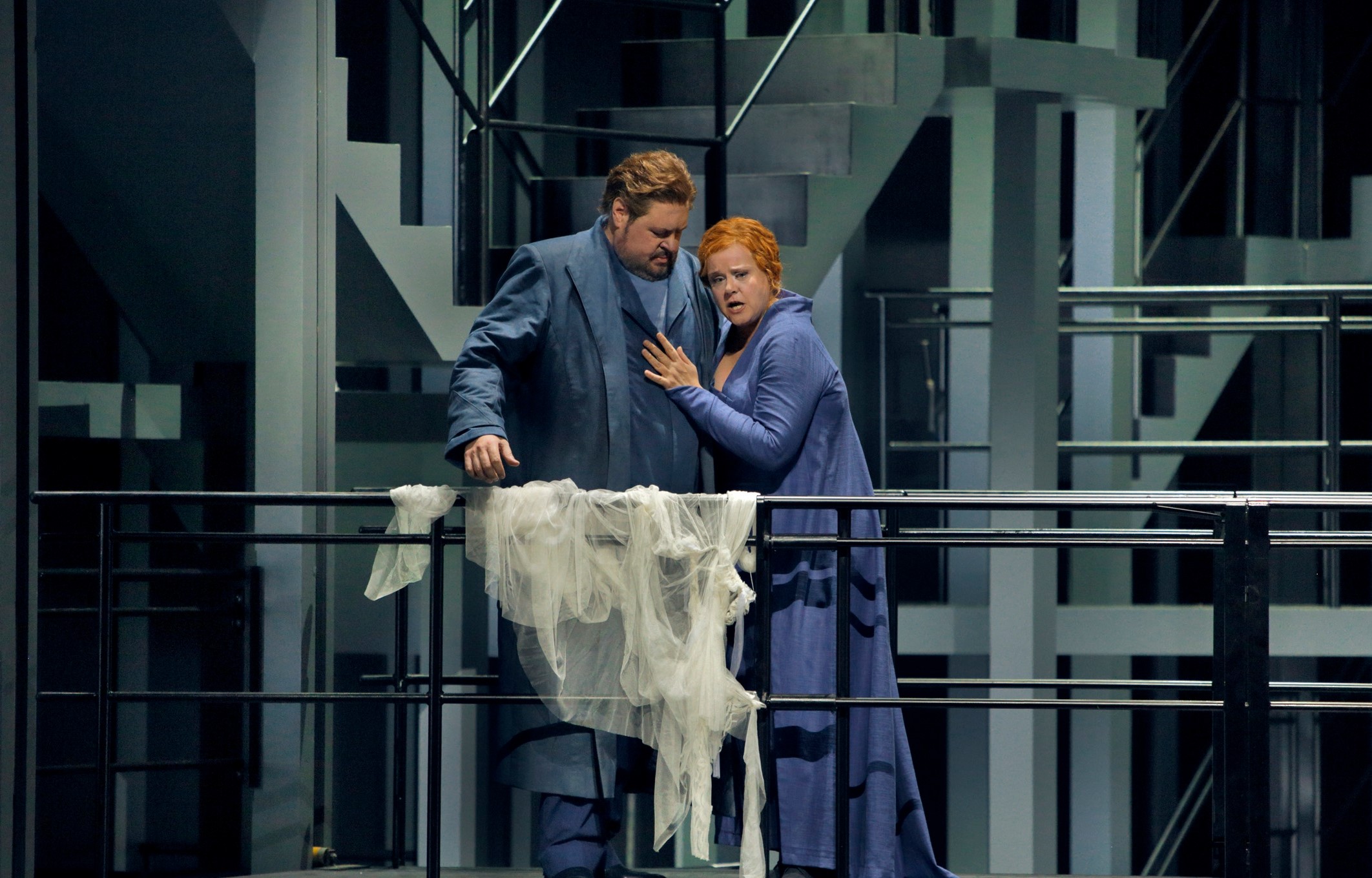 Genau da liegt beim „Tristan“ und bei der Wagner-Urenkelin der Hase im Pfeffer. Wenn man zum Beispiel beim szenisch markant sein wollenden Zerreißen des Brautschleiers und später beim Zerreißen des Umhangs einer der Isolden-Erscheinungen genauer hinschaut, sieht man erstens, dass die Protagonisten vor allem die präparierten Stellen suchen, die sich problemlos reißen lassen. Und zweitens, dass es der Regisseurin nicht gelungen ist, die Solisten von der Richtigkeit und Wichtigkeit dieser Aktion zu überzeugen.