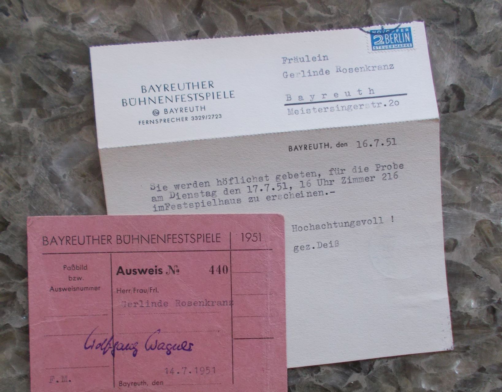 „Die beiden Wagner-Brüder Wieland und Wolfgang“, erinnert sich die heute 86-Jährige, die seit 1962 in Bamberg lebt, „hatten damals nur wenige Mittel, um die Festspiele wieder aufleben zu lassen, da war vieles noch ziemlich provisorisch.“ In der Zeitung stand, dass Verstärkung für den Chor gesucht wurde. Mit einer Schulfreundin ging Gerlinde zum Vorsingen ins Evangelische Gemeindehaus.