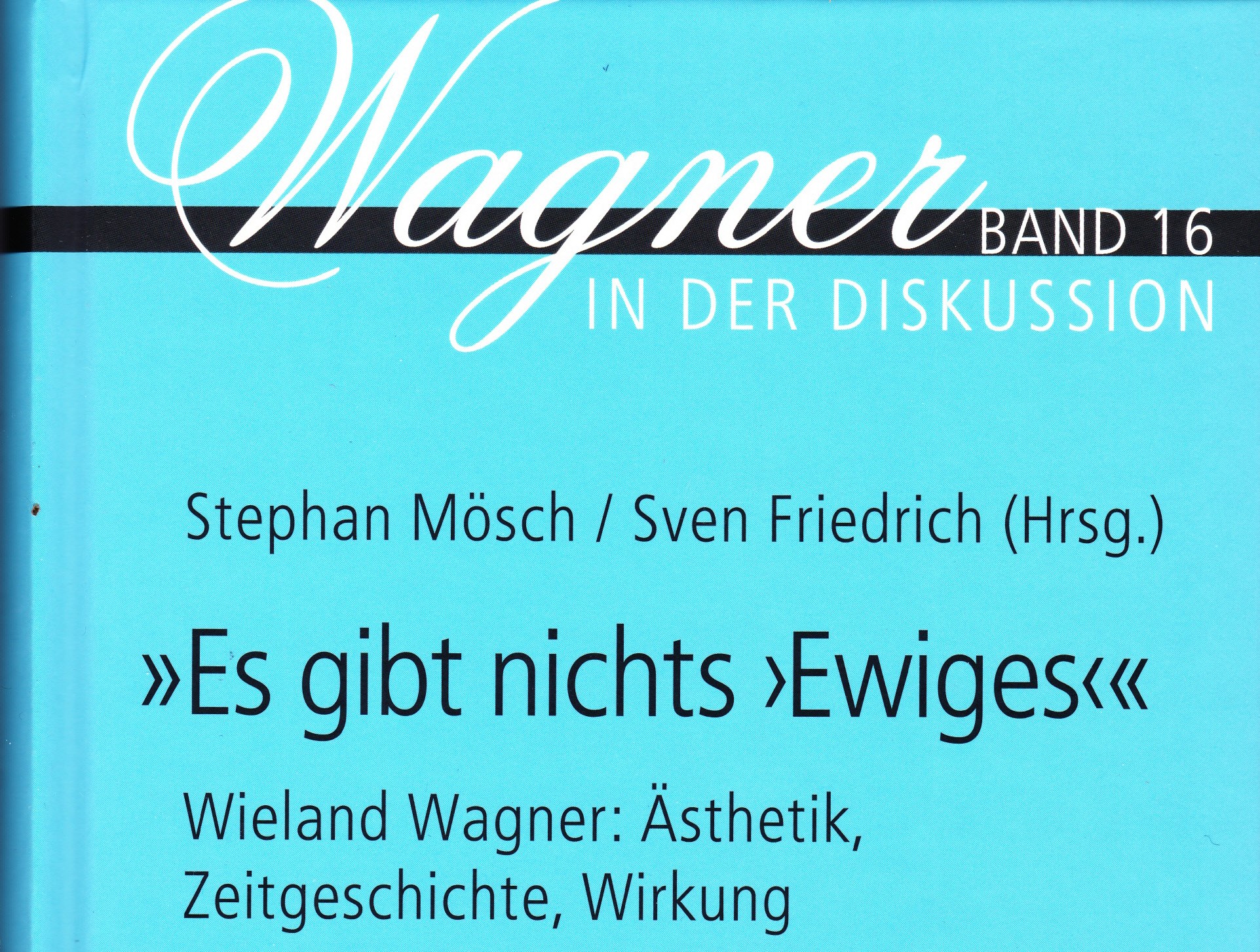 Dem reich bebilderten Vortrag Friedrichs liegt ein fast fünfzigseitiger Text zugrunde, der unter dem Titel „Es gibt nichts ‚Ewiges‘ “ im Nachgang auf ein mehrtägiges Wahnfried-Symposium zur Festspielzeit 2017 in Band 16 der Reihe „Wagner in der Diskussion“ aus dem Verlag Königshausen & Neumann 2019 veröffentlicht wurde. Ein empfehlenswertes Buch, in dem sich acht Autoren ausführlich mit Ästhetik, Zeitgeschichte und Wirkung bei Wieland Wagner auseinandersetzen.