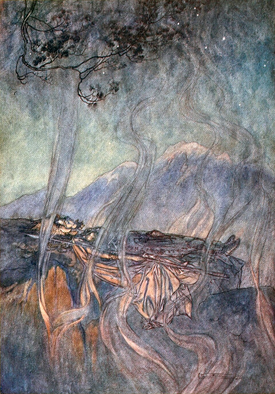 - Die schließliche Erlösung des Gottes und des Titanen – Wotans und Brünnhildes durch einen Helden bzw. Siegfried.