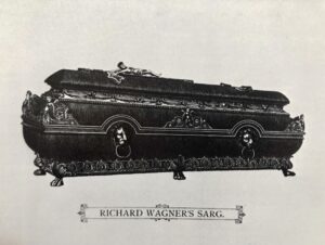 Schon tags zu­vor hat­te die Stadt Ve­ne­dig ei­nen De­pu­tier­ten mit dem of­fi­zi­el­len Kon­do­lenz­schrei­ben ge­schickt und mit­ge­teilt, dass sie Wag­ner eine wür­di­ge Trau­er­fei­er aus­rich­ten wol­le. Co­si­ma ließ ih­ren Dank aus­rich­ten – und den Wunsch, dass sie ih­ren to­ten Ge­mahl in al­ler Stil­le fort­brin­gen wol­le. „Krän­ze der präch­tigs­ten Art wur­den ab­ge­ge­ben“, be­rich­tet Hen­ri­et­te Perl zu Wag­ners letz­tem Ve­ne­dig-Auf­ent­halt, „dar­un­ter der Eh­ren­kranz des Kö­nigs von Bay­ern und ein schwarz-gol­de­ner vom Kö­ni­ge von Ita­li­en; fer­ner ein rei­cher Kranz vom Cir­co­lo ar­tis­ti­co, mit der In­schrift „Ve­ne­zia a Ric­car­do Wag­ner“. Zahl­lo­se Blu­men­spen­den von an­de­ren Ver­ei­nen und Pri­vat­per­so­nen gin­gen ein, dar­un­ter Krän­ze von der Fürs­tin Hatz­feld und de­ren Töch­ter. Erst­ge­nann­te Dame und Hans Rich­ter aus Wien wa­ren von Frem­den die ein­zi­gen Per­so­nen, wel­che den Meis­ter im Tode schau­en durften.“